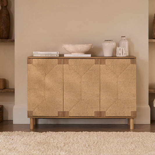 Paloma Natural Weave 3 Door Large Sideboard - Natural Oak