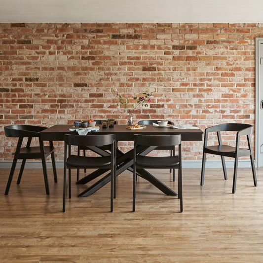 Amelia Black Dining Table Set - 6 Seater - Ella Black Wooden Chairs