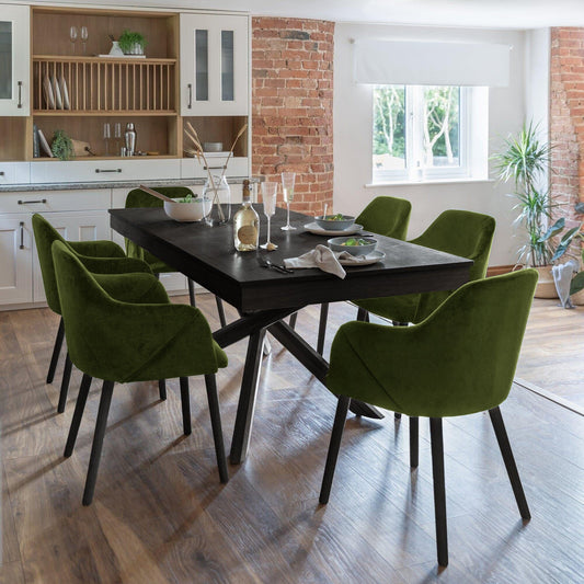 Amelia Black Dining Table Set - 6 Seater - Freya Fern Green Dining Chairs - Black Legs