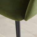 The Amelia black oak dining table features an oak veneer tabletop and rubberwood legs in a stylish crossover design. This rectangular table comes with 6 Freya armchairs each upholstered in fern green velvet fabric for a texture and armrests for comfort. The black chair legs complement the black table legs, creating a beautiful dining set.
