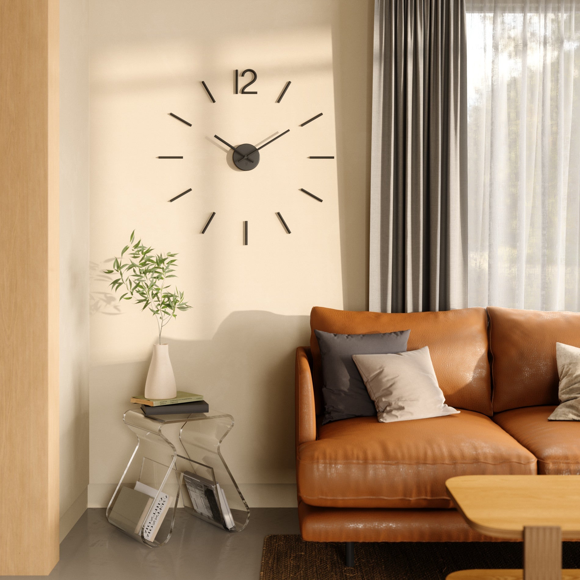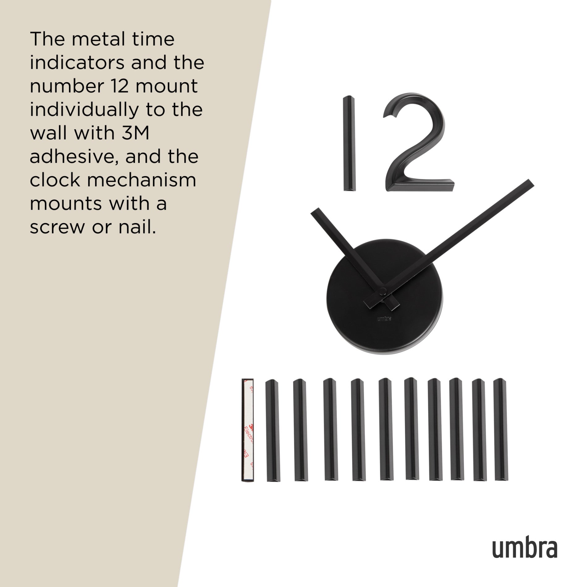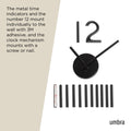 Use Blink to add a unique and decorative touch to any wall. This wall clock mechanism operates on a quartz clock movement that ensures precise and maintenance-free time measurements. Blink’s metal time indicators and the number 12 mount individually to the wall with easy to paste adhesive and the clock mechanism mounts with a screw or nail. The size is customizable depending on your preference, however if you aren’t feeling adventurous, Blink does include a preset wall template. All you need is 1 AA battery (not included) and you are set. Measures 39.5 x 1.38 x 39.5" (100 x 4 x 100 cm). This wall clock is made with an eco-friendlier finish. It produces 85% less water and solid waste than traditional electroplating finishes. ⓘ Blink’s metal time indicators and the number 12 mount individually to the wall with easy to install strong 3M adhesive and included mounting template. Clock mechanism mounts with a screw or nail. Mounting Hardware Included: Blink includes a clock mechanism that mounts to the wall with a screw or nail, and metal indicators that mount to the wall easily thanks to their 3M adhesive. *Warning: Surface damage may occur if adhesive mounting is removed. Ensure wall is clean and dust-free before applying adhesive components