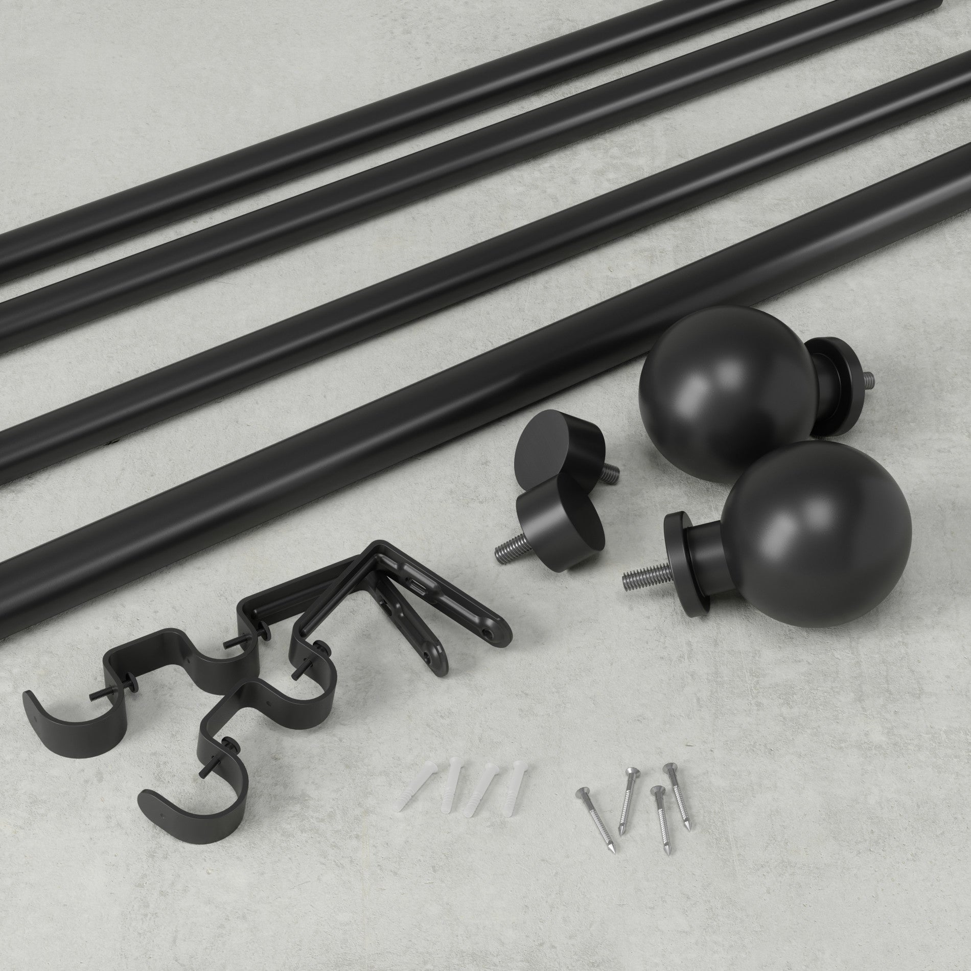 Featuring classic ball-shaped finials, with an updated design, Bolas can be incorporated into a variety of decor styles. Its double telescoping rods fit a wide range of windows to best suit your space. Made of steel, this double curtain rod is durable while remaining attractive in design. Includes all necessary mounting hardware for an easy installation. Bolas curtain 1" (2.5cm) diameter rod comes in a variety of sizes and supports curtain sets weighing up to 22lbs. (10kg) per rod.This curtain rod is made with an eco-friendlier finish. It produces 85% less water and solid waste than traditional electroplating finishes. To support the full 22 lb (10 kg) weight capacity, installation of the included center support bracket is required.