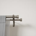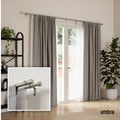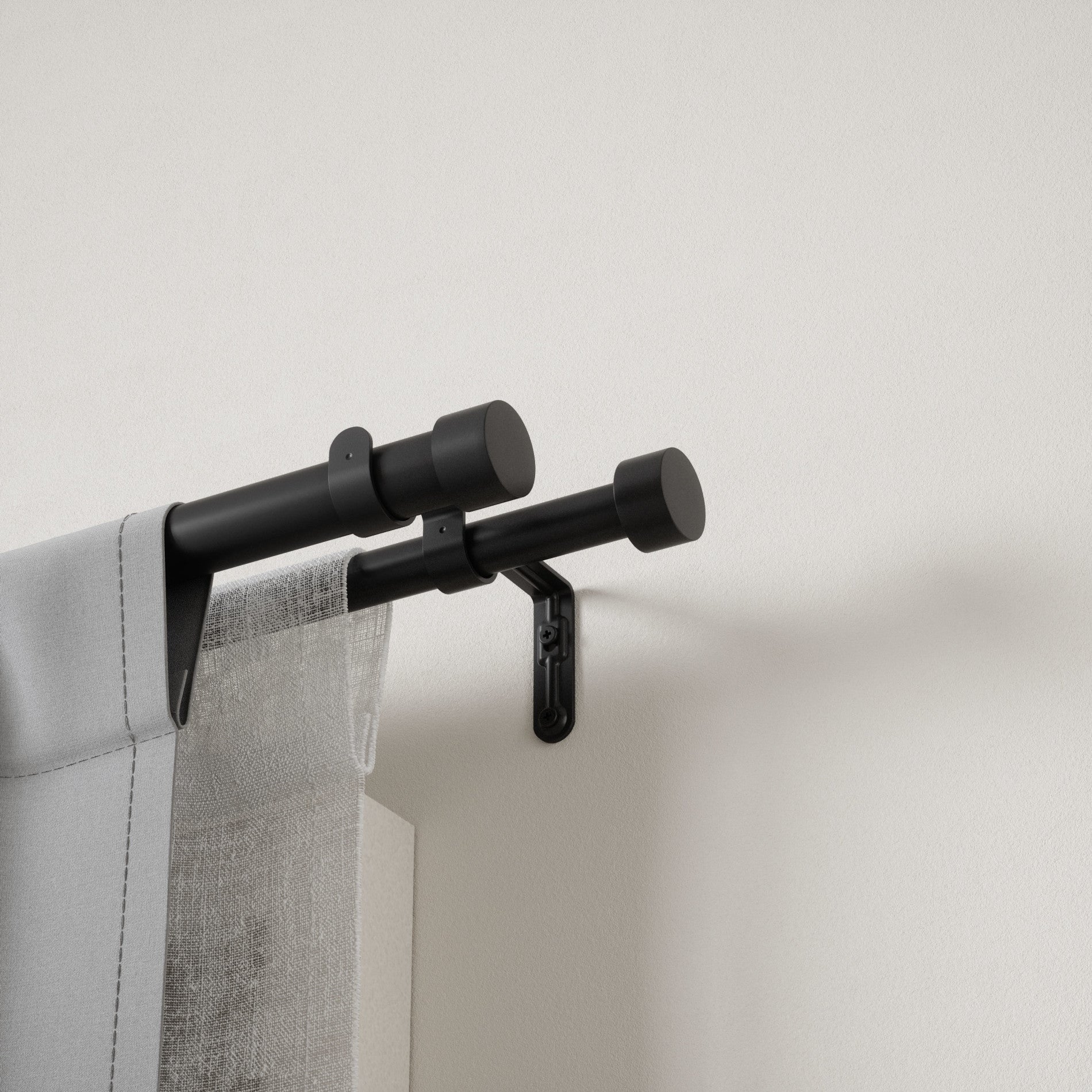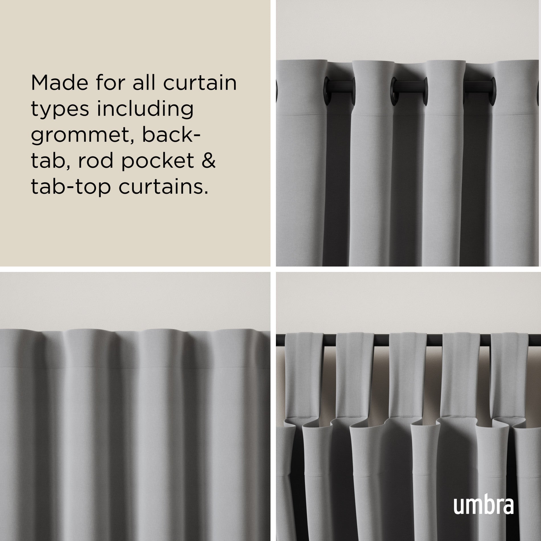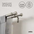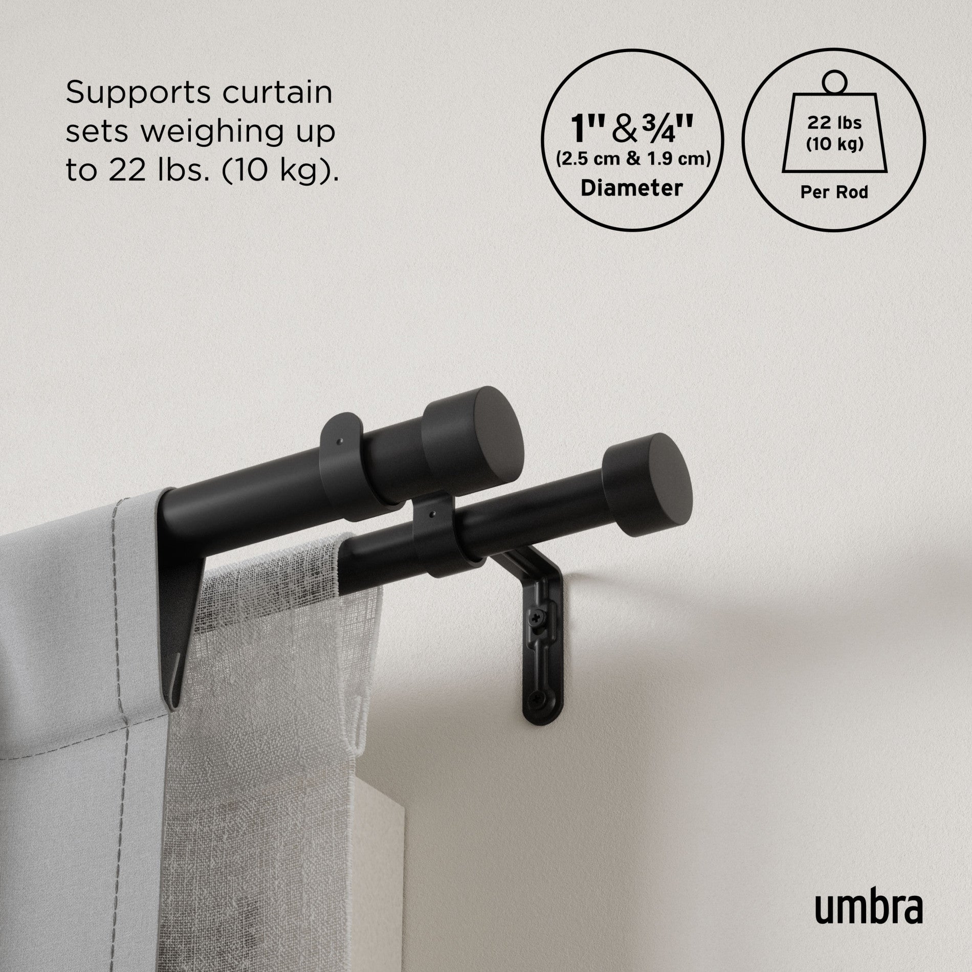 Transform your space with the Cappa Double Curtain Rod by Umbra, designed for both style and functionality. This versatile rod lets you easily layer curtains for a more customized look, whether you're aiming for elegance or added privacy. Supporting curtains up to 22 lbs (10 kg), it’s sturdy and reliable, yet easy to install with all the necessary hardware included. The eco-friendly finish reduces waste, making it a choice that’s kind to your home and the planet. With adjustable lengths and sleek design, Cappa effortlessly complements any decor while offering the flexibility to fit your window perfectly. *To support the full 22 lb (10 kg) weight capacity, installation of the included center support bracket is required. Handle with care during installation to avoid surface wear.