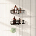 Add elevated storage to your bath or shower space with Cubiko Shower Bins. These non-damaging shower nested storage caddies have a modern, bent-wire design, making them easy to integrate with a variety of decor styles. Easy to install, Cubiko includes non-damaging, waterproof adhesive strips that can be applied on various surfaces such as tiles, drywall, concrete, etc. (does not work on porous surfaces). Each bin has a max load of 10 lbs (4.5 kg) and is made of rust-free metal. Includes two metal hooks to hold loofahs, small towels, and more. This shower bin is made with an eco-friendlier finish. It produces 85% less water and solid waste than traditional electroplating finishes. ⓘ Non-Damaging Adhesive Installation: Completely non-damaging to your tiled walls. Cubiko includes a strong adhesive backing that can be applied on various surfaces such as tiles, drywall, concrete, etc. Surfaces must be smooth and clean for mounting. Warning: Surface damage may occur if adhesive mounting is removed from drywall, concrete, wallpaper, and porous surfaces.