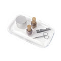This delicate yet modern amenity tray has soft, curved lines, while the clear acrylic material it's made of makes it modern but also versatile enough for almost any room. Perfect as a tray for jewelry, makeup brushes, keys at an entryway and more, you're bound to have trouble deciding which room you want to put this multi-purpose piece in. Droplet is made of acrylic so it's easy to clean and very durable. Great for gift-giving, you can also use the tray as a base when packaging several accessories as a gift. Droplet Tray measures 9.75 x 6 x 0.75" (25 x 15 x 2 cm).