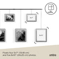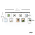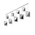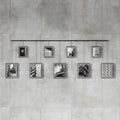 Exhibit Photo Display features a wall-mounted brushed metal ledge with clips and brackets to hold nine gallery-style picture frames of various size, all while reducing the amount of damage typically left on walls. The brackets with the frames are suspended from the ledge, which allows them to be moved around to create various layouts. Its flexible horizontal hanging properties make Exhibit a great addition to your stairway due to its ability to be hung angled. Use Exhibit to set a décor accent in your living room, bedroom, entryway, office or studio and give it a modern update while curating your favorite photos and artwork. Exhibit is customizable to your layout preference. The picture frames can be moved around the metal ledge and rotated to a landscape or portrait orientation. Exhibit features five 8x10" and four 5x7" picture frames to fit all of your favorite photos, artwork, illustrations and more. Complementary to multiple decor styles, Exhibit makes is a beautiful wall decor piece that allows you to change out images easily to refresh your room any time you want. Measures 87.88 x 1.38 x 30.5" (223 x 4 x 77 cm).