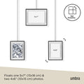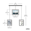 Exhibit Photo Display features a wall-mounted brushed metal ledge with clips and brackets to hold three gallery-style picture frames of various size, all while reducing the amount of damage typically left on walls. The brackets with the frames are suspended from the ledge, which allows them to be moved around to create various layouts. Its flexible horizontal hanging properties make Exhibit a great addition to your stairway due to its ability to be hung angled. Use Exhibit to set a décor accent in your living room, bedroom, entryway, office or studio and give it a modern update while curating your favorite photos and artwork. Exhibit is customizable to your layout preference. The picture frames can be moved around the metal ledge and rotated to a landscape or portrait orientation. Exhibit features two 4x6 and one 5x7 picture frames to fit all of your favorite photos, artwork, illustrations and more. Complementary to multiple decor styles, Exhibit makes is a beautiful wall decor piece that allows you to change out images easily to refresh your room any time you want. This picture frame is made with an eco-friendlier finish. It produces 85% less water and solid waste than traditional electroplating finishes. Measures 26.38 x 18 x 1 inches (67 x 46 x 3 cm).