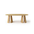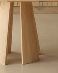 New for AW25 the Farren 10 seater dining table is a statement piece for any dining room. Finished in whitewash oak for a contemporary look, the oval tabletop features a chamfered edge offering a softer look. Under each end the table sits splayed slatted legs creating a striking look.