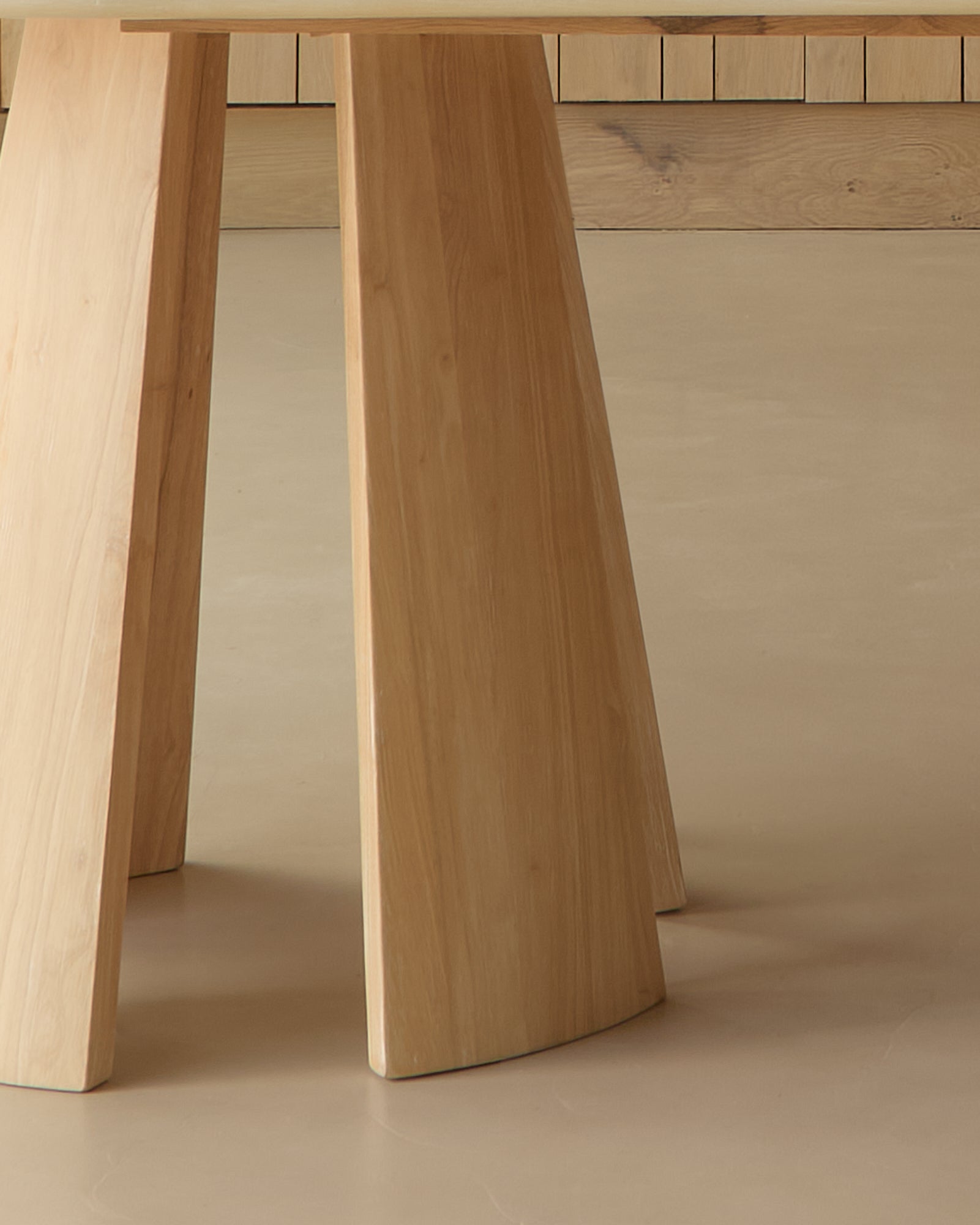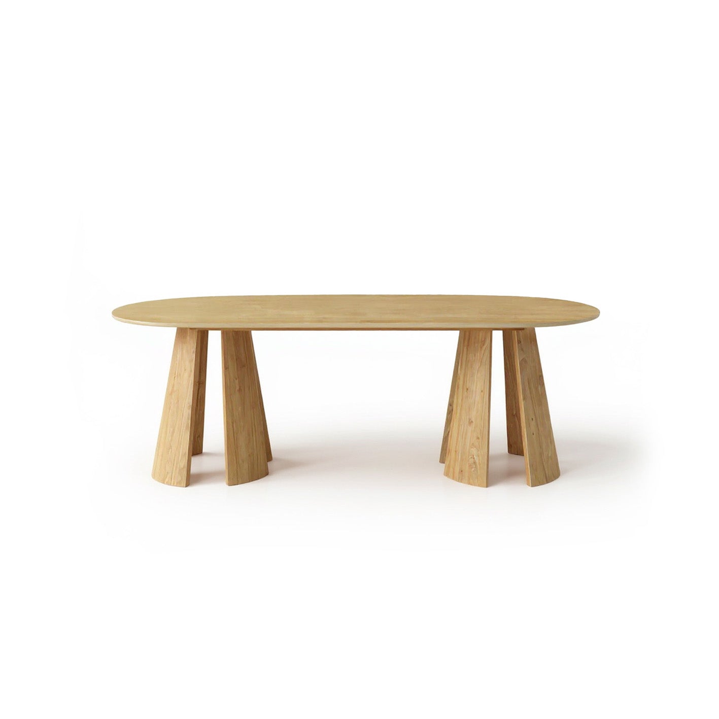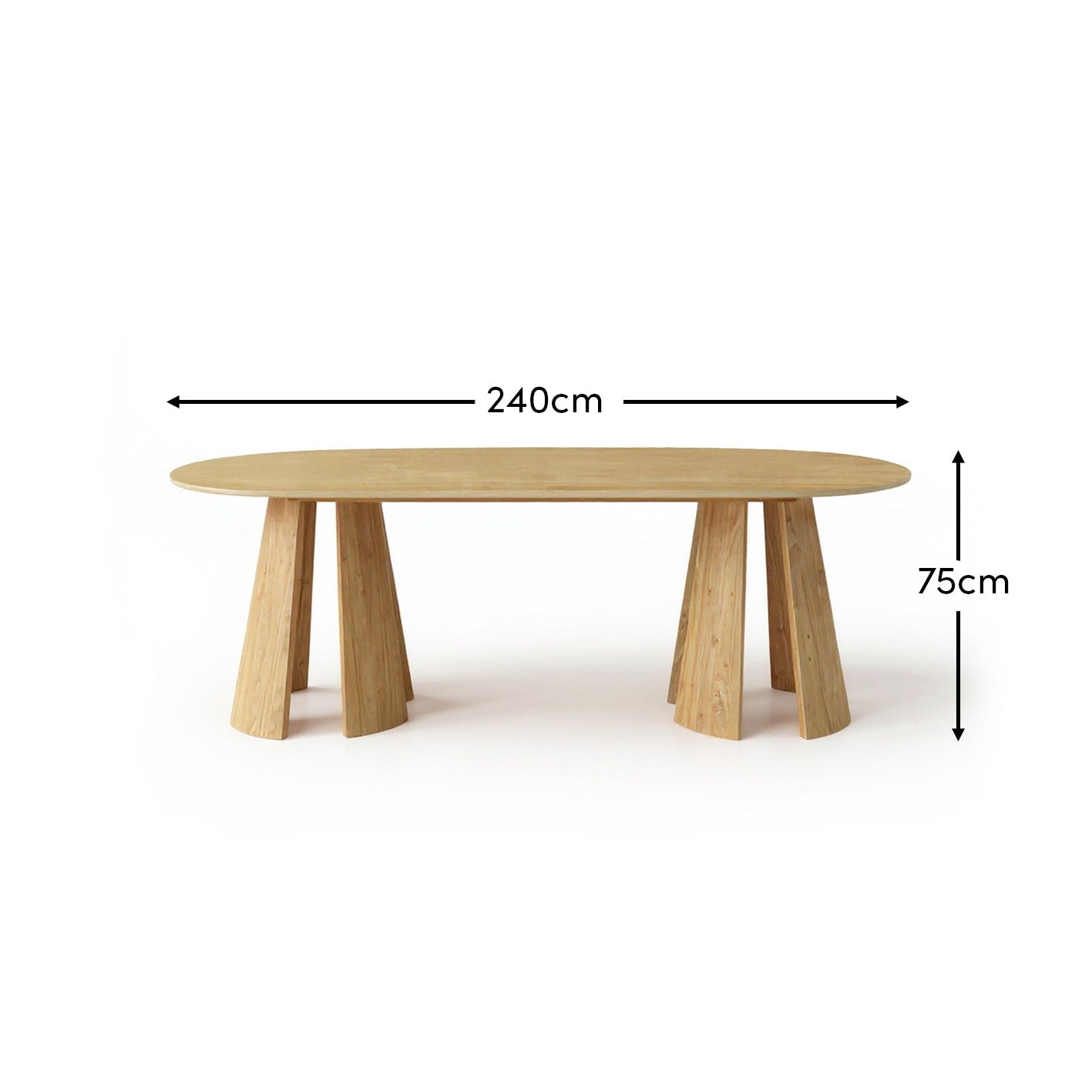 - Design features - Oval 240cm table chamfered edge and slatted statement legs.