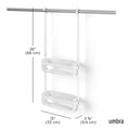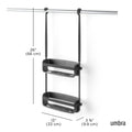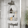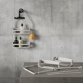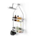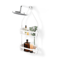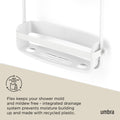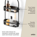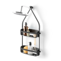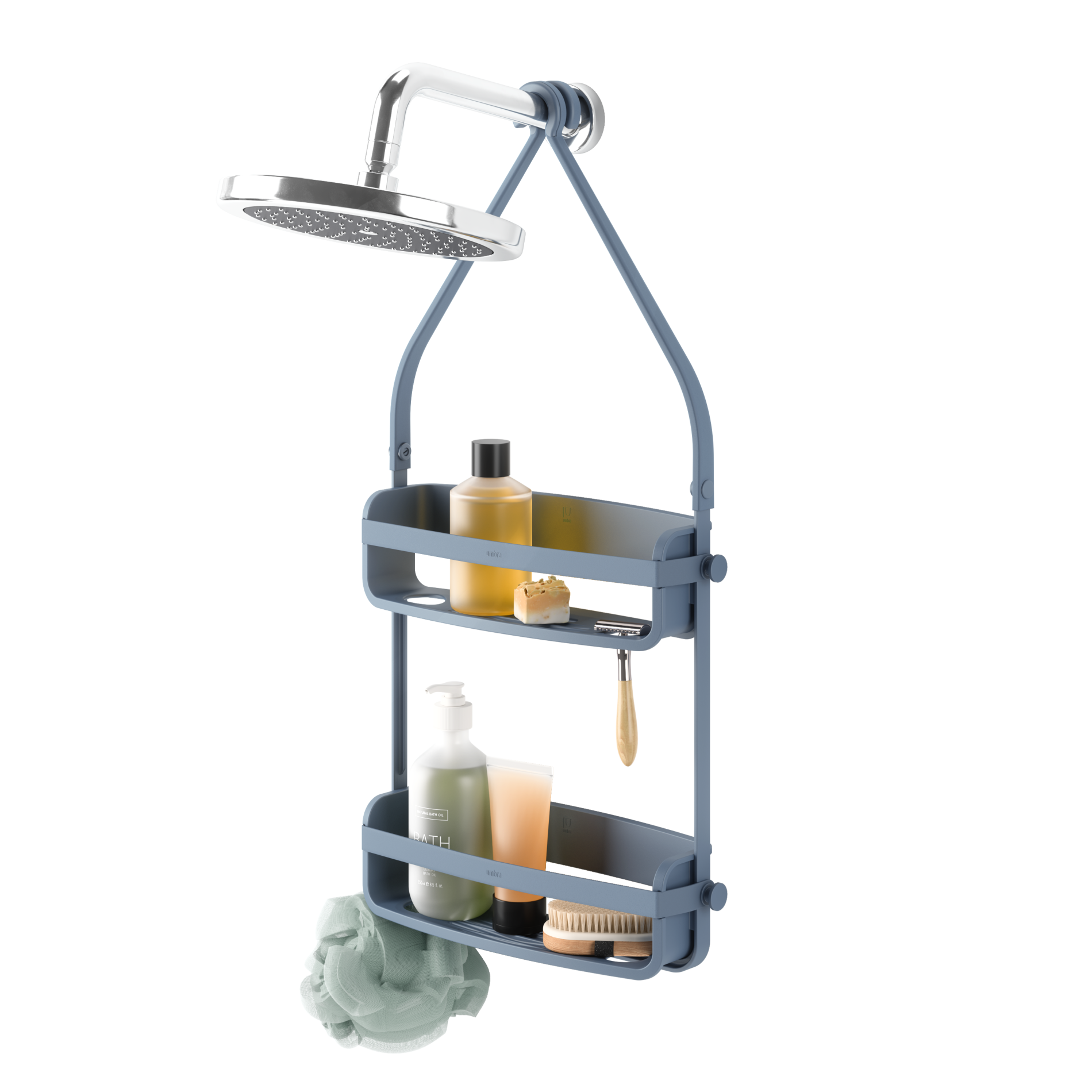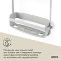 Store all your shower essentials in one place with Umbra’s highly functional Flex Shower Caddy. Flex was designed to take up minimal space in the shower while still accommodating larger bottle sizes. Made of a rigid plastic frame, Flex Shower Caddy features flexible silicone bands that give plenty of storage options. Flex also features two extra wide plastic shelves to accommodate all your shampoo, conditioner and body wash while the four hooks are perfect for loofahs and storing razors. Utilize the four “Bottle Collars” to hold your bottles bottom-up, making it possible to dispense every drop, while holding your bottle in place. No need to worry about moisture or product buildup as Flex features an integrated draining system that prevents unwanted mold and mildew. Flex can be mounted either over the shower head or the on the shower curtain rod. Measures 12.13 x 3.5 x 25.5" (31 x 9 x 65 cm). ♻️ Made from 90% recycled plastic.