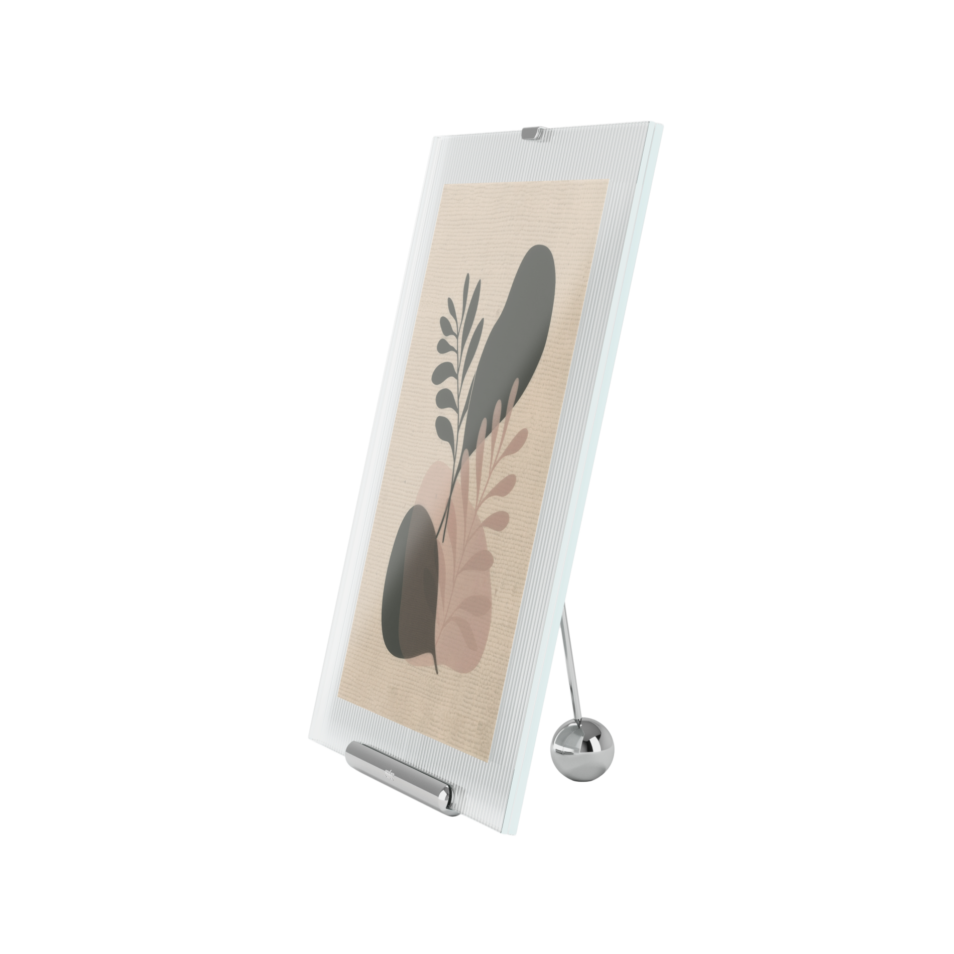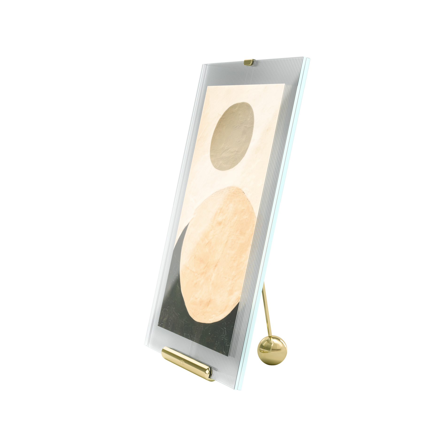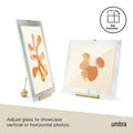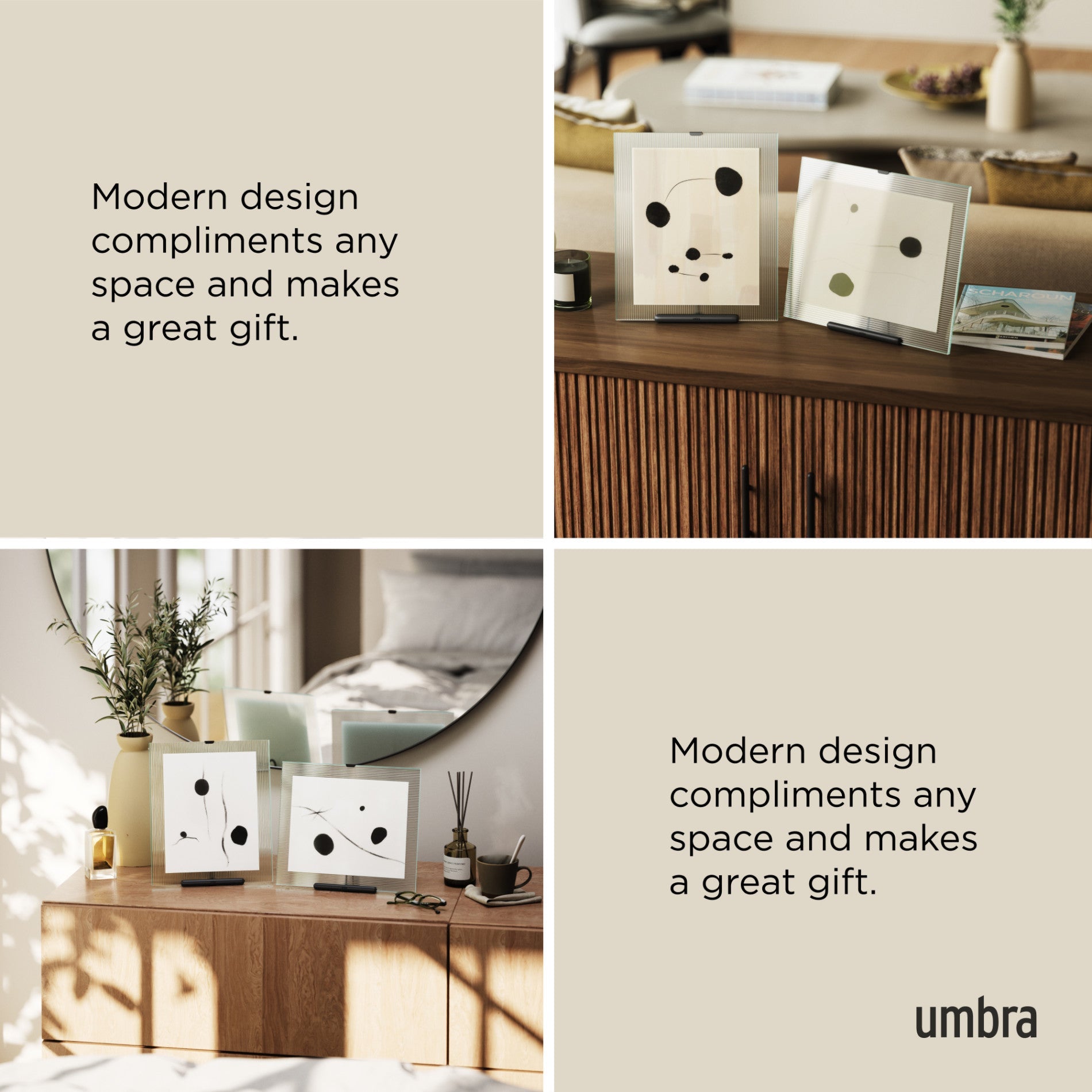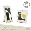 Introducing the Umbra Flute Picture Frame, a stylish addition to your home decor. With its decorative easel design, this frame effortlessly showcases your cherished memories. Its versatile design accommodates both 4x6, 5x7 or 8x10 photos, while the ribbed glass texture adds an elegant touch. Plus, enjoy the freedom to display your photos in either landscape or portrait orientation. Capture and display your favorite moments with flair using the Umbra Flute Picture Frame. Each metal piece is carefully and individually polished by hand, ensuring that every item has its own unique character and shine. Slight variations or inconsistencies in the finish may occur due to the handmade nature of the product.
