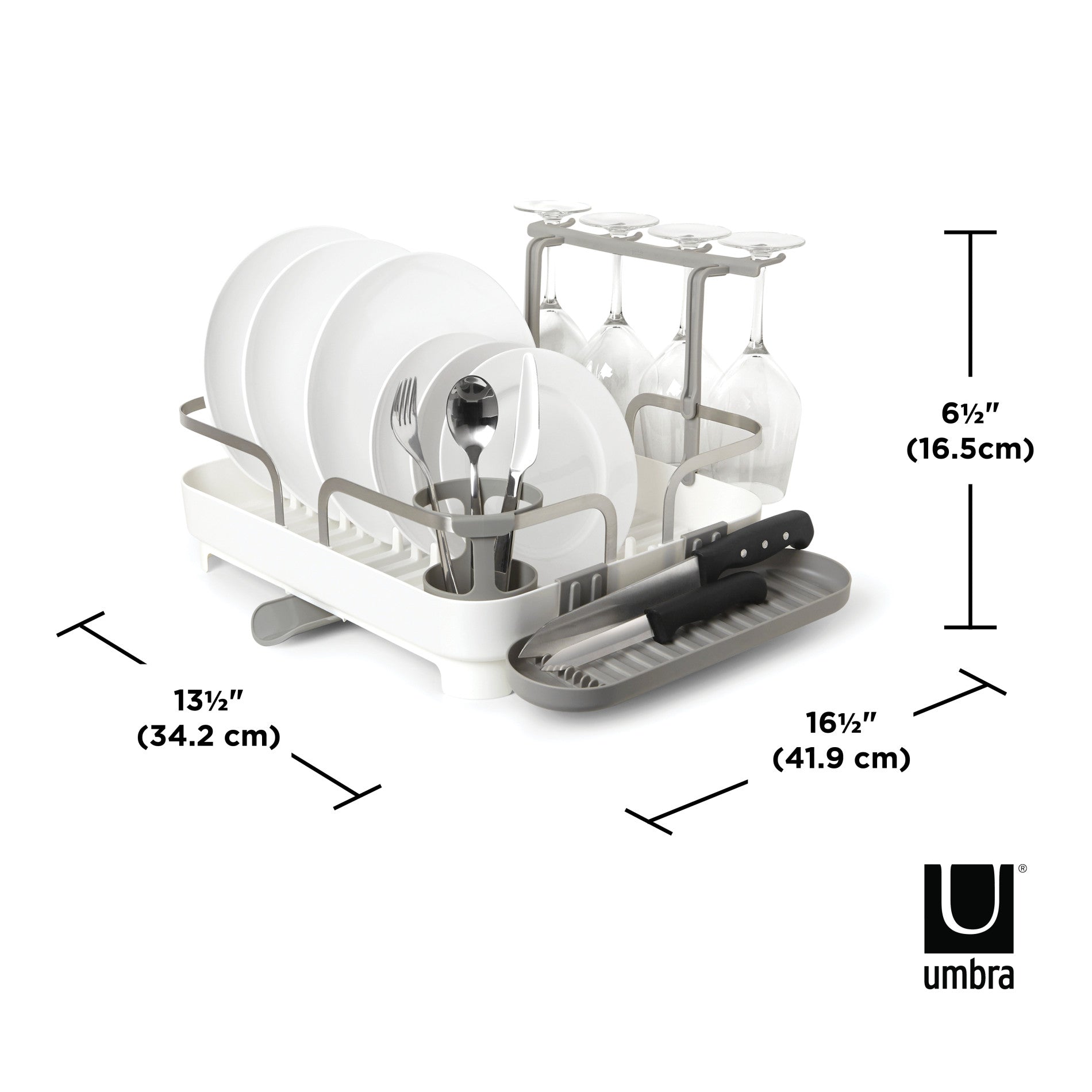 Holds Lots Of Dishes: This highly functional dish rack holds 15 plates and has utensil storage, a movable stemware holder, and a side tray suitable for a variety of items