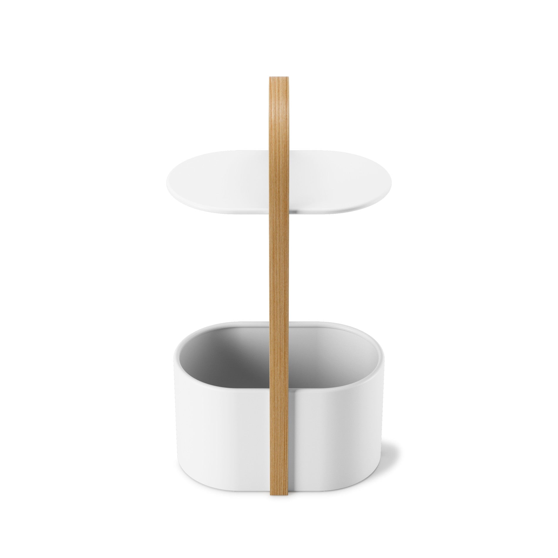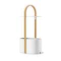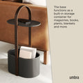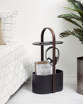 A modern solution for messy cables and storage, Bellwood storage side table is both a side table and cable management in one. Made of metal and wood, this side table can be used in any space to provide both multi-purposeful and sophisticated storage. Bellwood side table and cable management features a hook under its top table to neatly hold your device’s charging cord and an opening on the bottom for power cables to seamlessly stem through. Its tabletop provides the perfect spot for your device or a glass of wine, while its underneath storage container works great for cables or larger items like blankets or books. Measures 13.88 x 9.5 x 27.13" (35 x 24 x 69 cm). Sourced from renewable wood sources. Wood is a unique natural material with variations in tone, texture, and grain. The product may vary from our imagery. ⓘ For Best Care: use coasters to avoid direct contact to wood surfaces and if you experience a spill, wipe with a damp clean cloth immediately to avoid discoloration.
