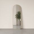 Elevate your space with the Hubba Arched Leaning Mirror, a modern take on the classic floor mirror. Its unique arch shape and thin metallic frame bring a soft, elegant touch to any room, while its large reflective surface brightens and visually expands your space. Perfect for entryways, bedrooms, or living areas, Hubba adds both style and function. Measuring 20.13 x 1.63 x 62.25 inches (51 x 4 x 158 cm), it can be securely wall-mounted or leaned against a wall with included anti-tip hardware. Please note: Hubba is designed for vertical display only and cannot be hung horizontally.