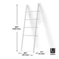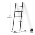 Both decorative and functional, Leana Ladder features solid wood posts and 4 metal bars, providing you room to store blankets, clothes, towels and more. Easy to assemble, Leana provides a modern storage solution that can be used in a variety of rooms in your home. With a solid wood construction and powder-coated steel, this innovative storage solution is the ideal towel rack, blanket rack, or clothing organizer. Leana measures 18" (46 cm) wide and 60" (5 ft) tall. Sourced from renewable wood sources. Note: Leana Ladder is not intended for climbing, with a maximum weight of 5lbs per rail.