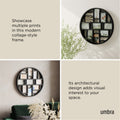 Luna holds nine of your favorite 4x6 inch photos in a modern, gallery-style fashion and will effortlessly enhance your wall decor. At the same time, its practical design features a solid backing which allows you to clean and change your images easily. Luna has an impactful 23-inch diameter (58.4 cm) design and comes with two sawtooth hangers pre-mounted to the frame; so, hanging it is also a breeze. Made with recycled plastics.
