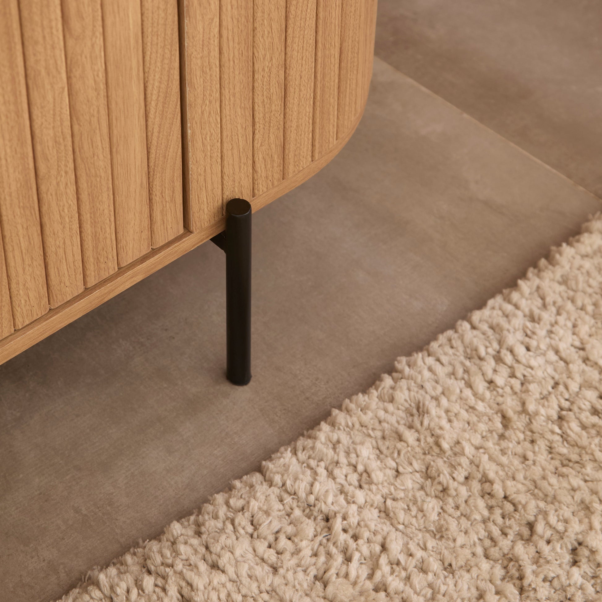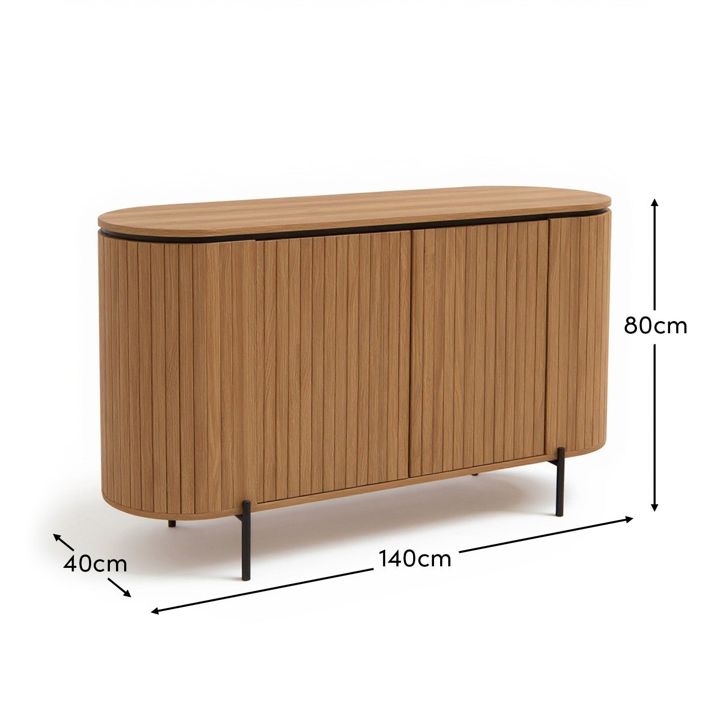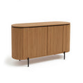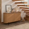 - Design features - Curved 3 door sideboard with textured slatted front doors and black raised legs.