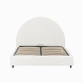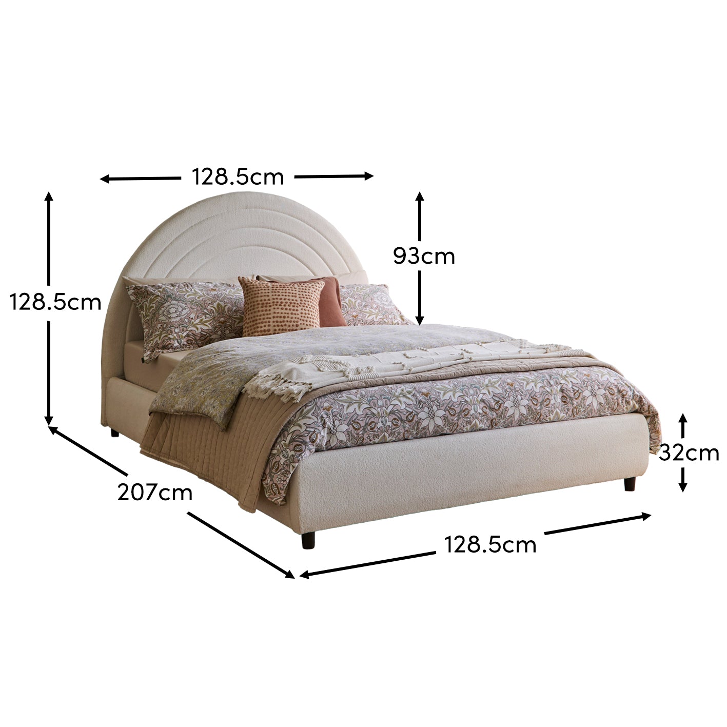 - Design features - Double ottoman bed with curved headboard in white boucle fabric. Lift up base to access under bed storage.