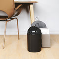 Mini Can is a small and stylish trash can by Umbra that is made to fit into small spaces and underneath cabinets. Shaped like a classic garbage can with its domed, swing-top lid but petite in size, Mini Trash Can measures 12.4 x 6.89 x 6.89" (31 x 18 x 18 cm) and has a 1 ¼ gallons (5 L) capacity. Available in your choice of black or white onyx. Made from durable recycled polypropylene, this trash can is easy to care for; simply wipe it down with a damp cloth or paper towel when you need to clean it. For an adorable garbage can that will look just as good left out as it will tucked under a cabinet, order the Mini Can today. Made with recycled plastics.