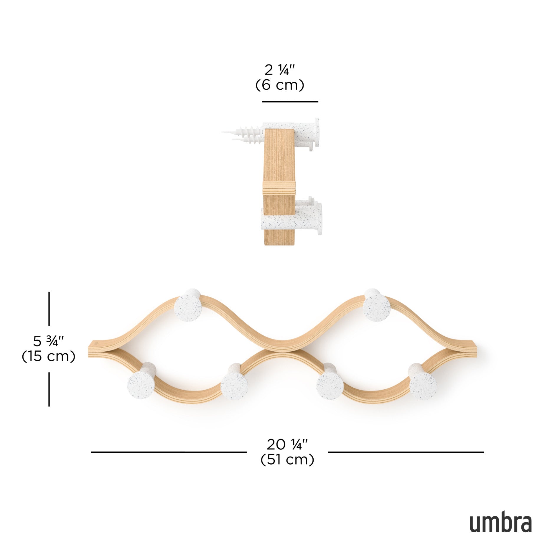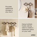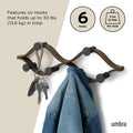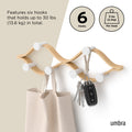 Elevate your organization with the Umbra Montage 6 Hook. Its modern bent-wood design seamlessly blends into any décor while offering ample storage with six hooks for coats, hats, scarves, and more. Crafted from renewable wood sources, it's both stylish and environmentally friendly. Pair it with our Montage Collection for a cohesive, curated look in your home. Max weight capacity of 30 lbs (13.6kg). Holds 5 lbs (2.3kg) per hook.