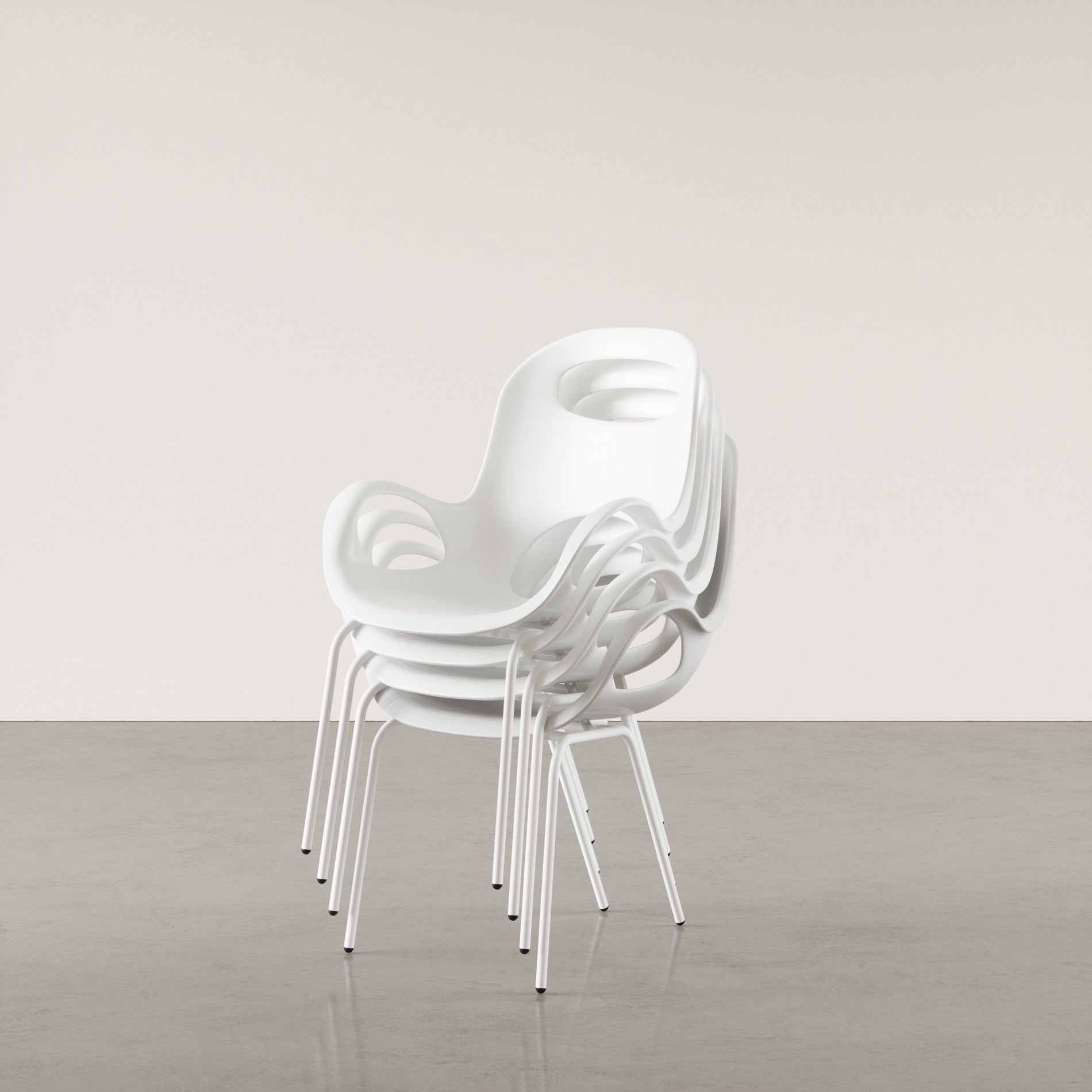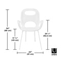 This durable and ultra-comfortable chair has a nice give to it, which means when you lean back in your seat, the chair will move with you. Chic inside the house or outside on your patio or porch, the chair's polypropylene material is long-lasting and easy to clean. Its nylon feet will prevent your floors from getting damaged. Measures 23.82 x 24.41 x 34 inches (61 x 62 x 86 cm). ♻️ Made with recycled plastics. 250lbs. (114kg) weight capacity per chair.