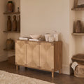 - Design features - Large 3 door sideboard with textured woven doors in a natural hue.