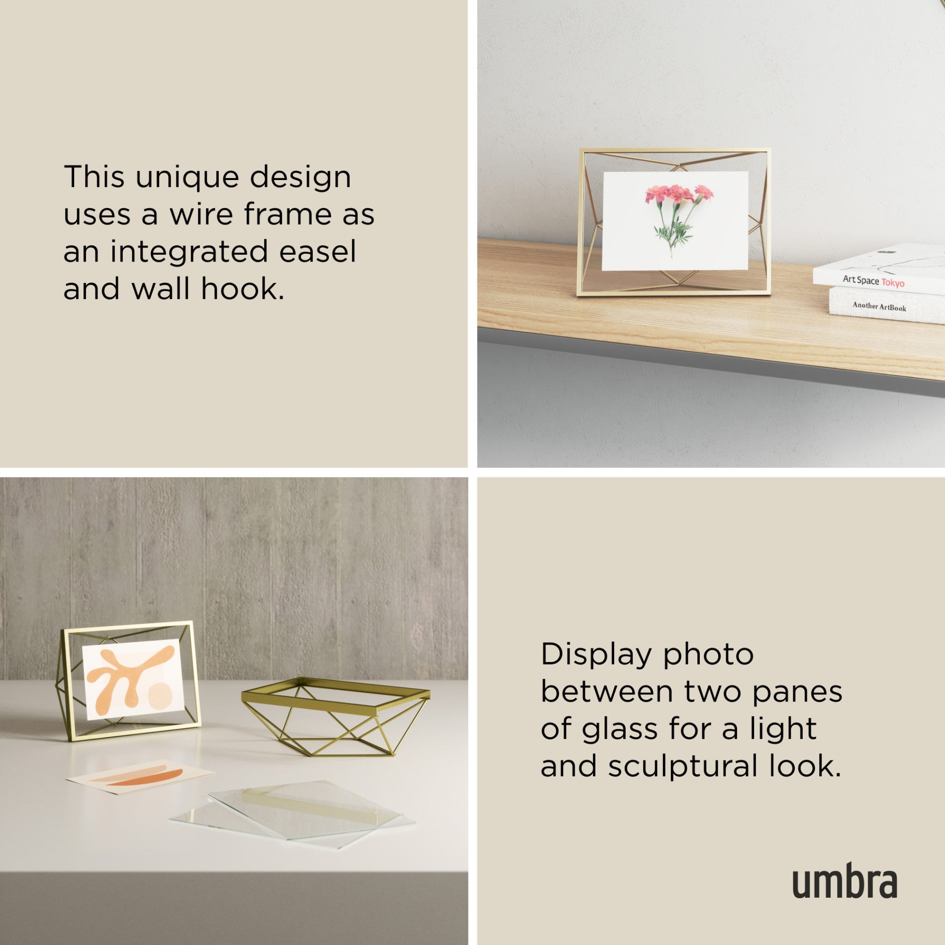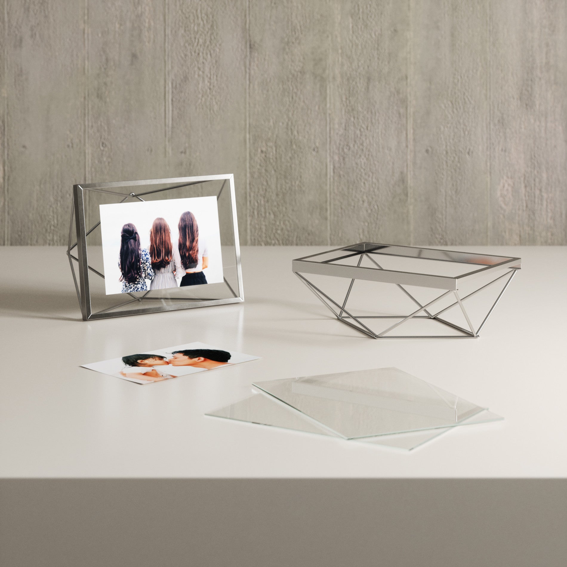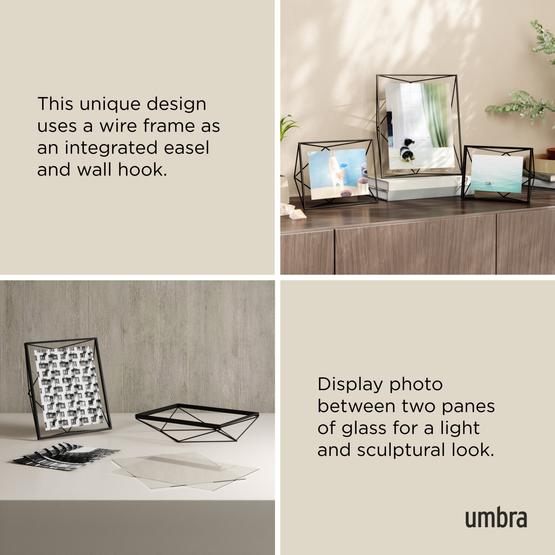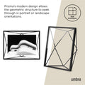 Umbra's Prisma Picture Frame is the perfect way to showcase your favorite memories. This geometric picture frame is designed to provide a unique way to display your favorite photos or art prints. Floating your photos between two panes of glass, the Prisma’s geometric design allows the frame’s modern look to show through while highlighting each image you place inside. Whether your photos are landscape or portrait, the Prisma can be used for both – making it easy to create an eye-catching display in any space. Easily hang on walls using its included hardware, and show off all of your favorite memories with this unique picture frame from Umbra.