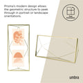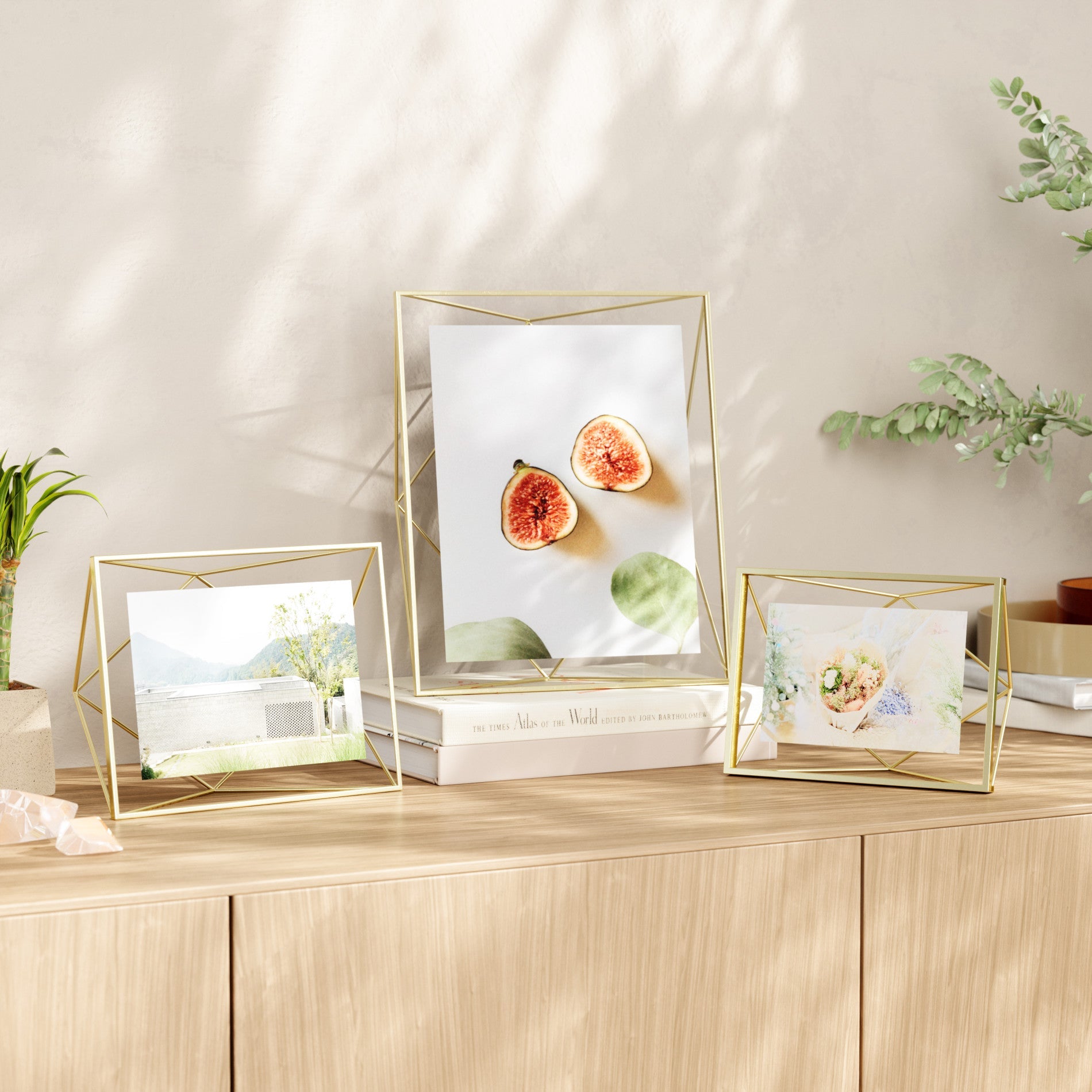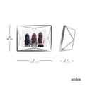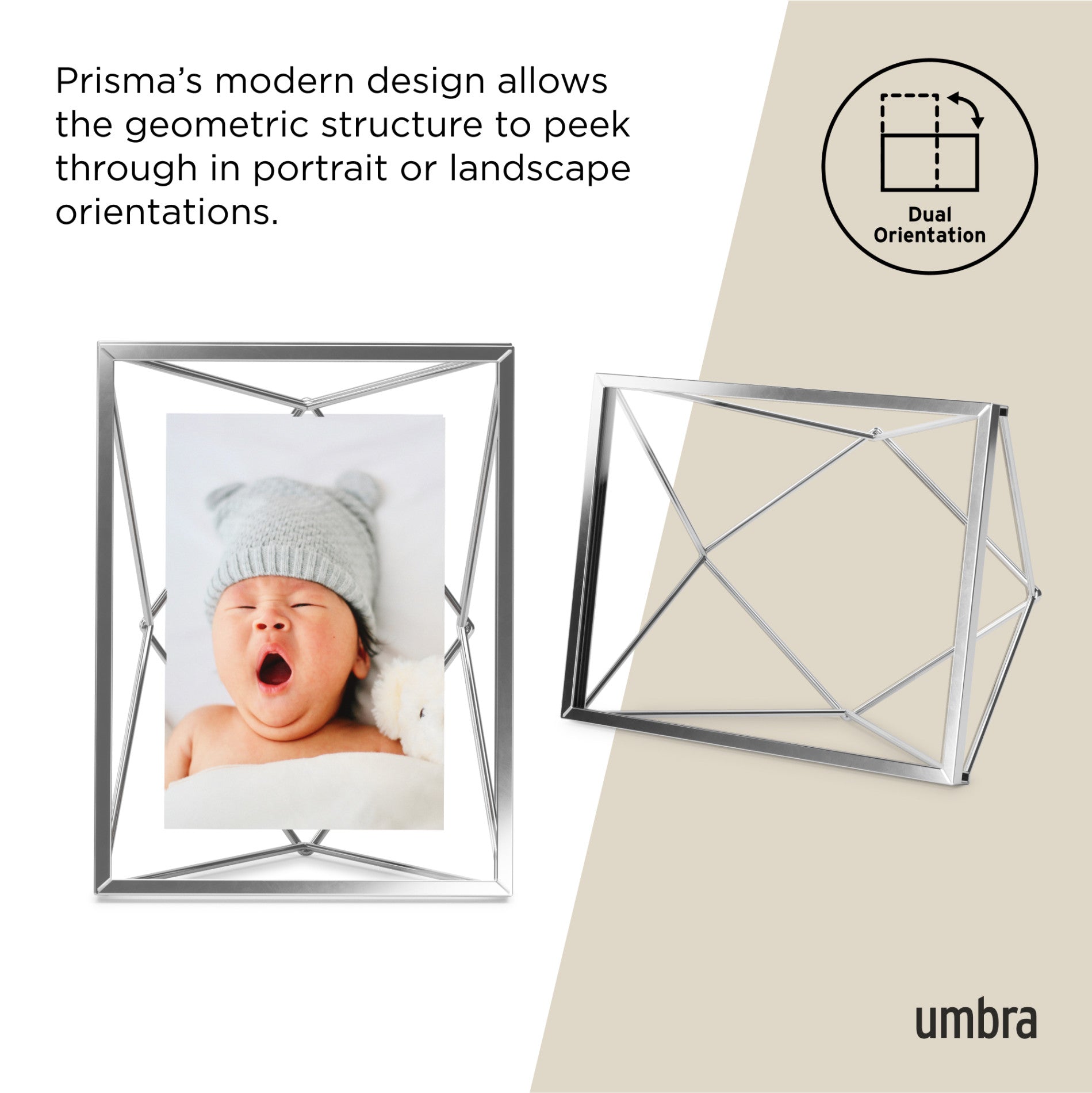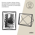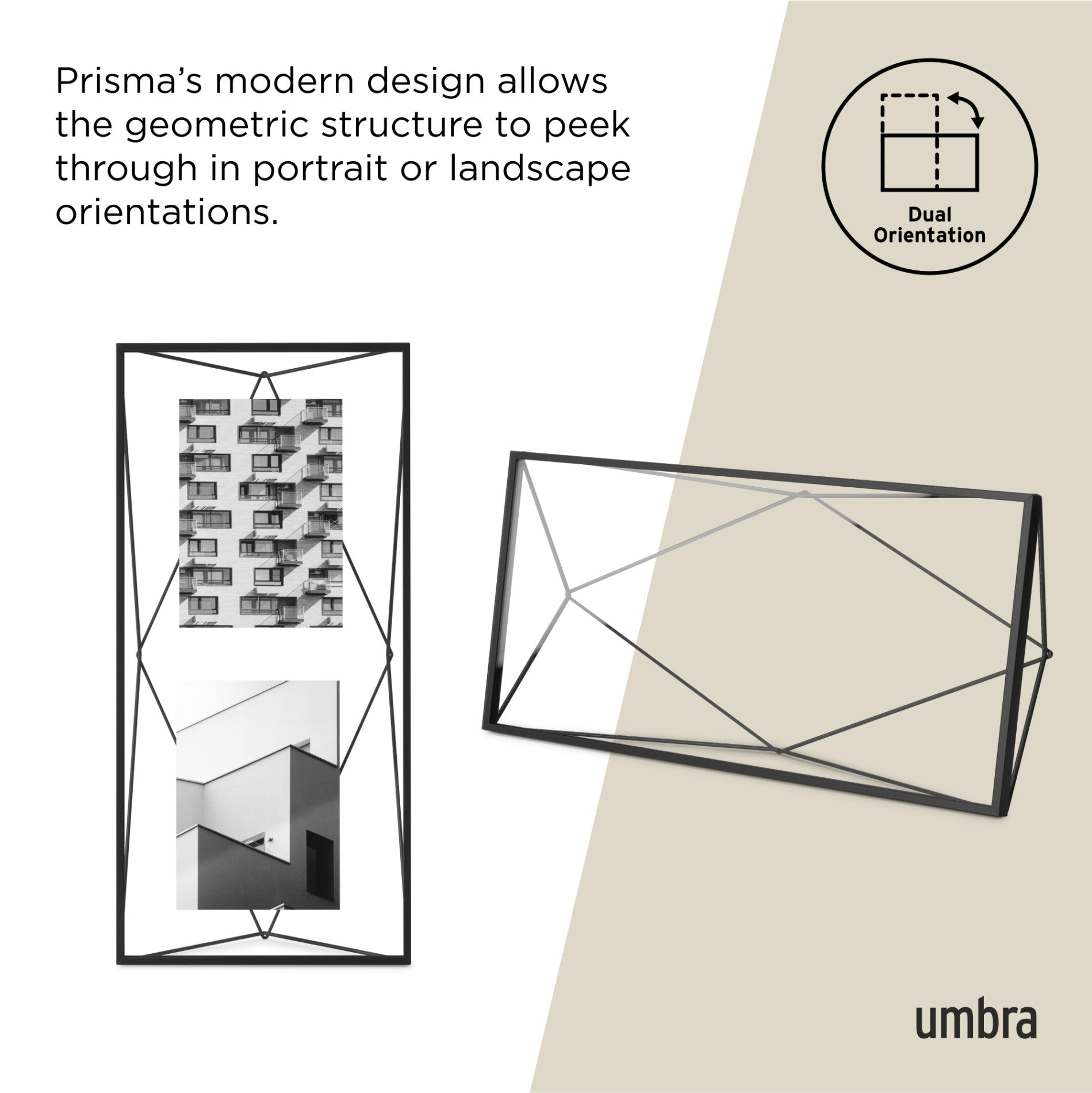 Umbra's Prisma Picture Frame is the perfect way to showcase your favorite memories. This geometric picture frame is designed to provide a unique way to display your favorite photos or art prints. Floating your photos between two panes of glass, the Prisma’s geometric design allows the frame’s modern look to show through while highlighting each image you place inside. Whether your photos are landscape or portrait, the Prisma can be used for both – making it easy to create an eye-catching display in any space. Easily hang on walls using its included hardware, and show off all of your favorite memories with this unique picture frame from Umbra.