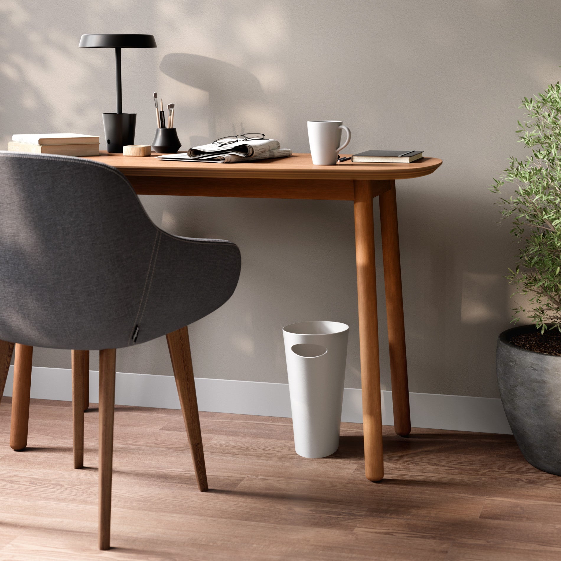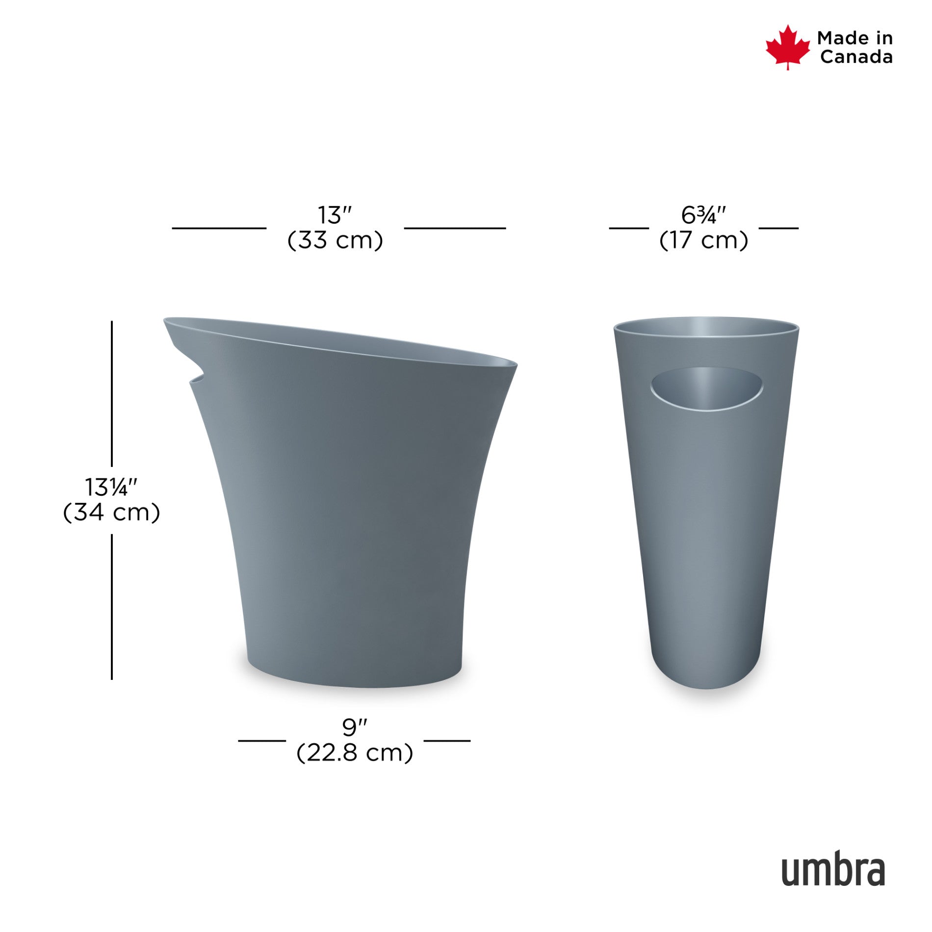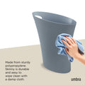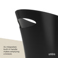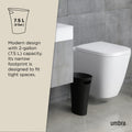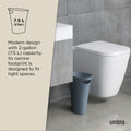 Umbra Skinny Can is a slim and stylish trash can, with a narrow footprint, designed to fit into small spaces and hold up to 2 gallons. Skinny is sleek and narrow, with a modern design, and comes in a wide array of finishes to match any existing decor. With a polypropylene construction, Skinny is durable and easy to maintain. Its integrated, built-in handle allows for the simple transport and disposal of contents. Skinny features rounded corners to prevent liquids from getting trapped into tight corners. Measuring at 13.5 x 6.5 x 13 inches (34 x 17 x 33 cm), Skinny is able to fit into compact, unconventional places and make a contemporary, bold statement.