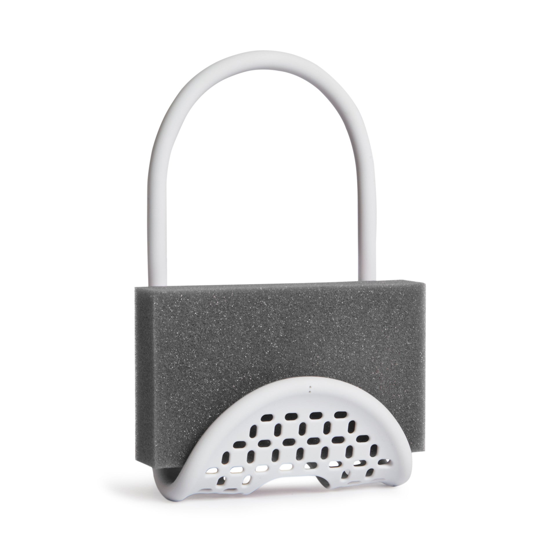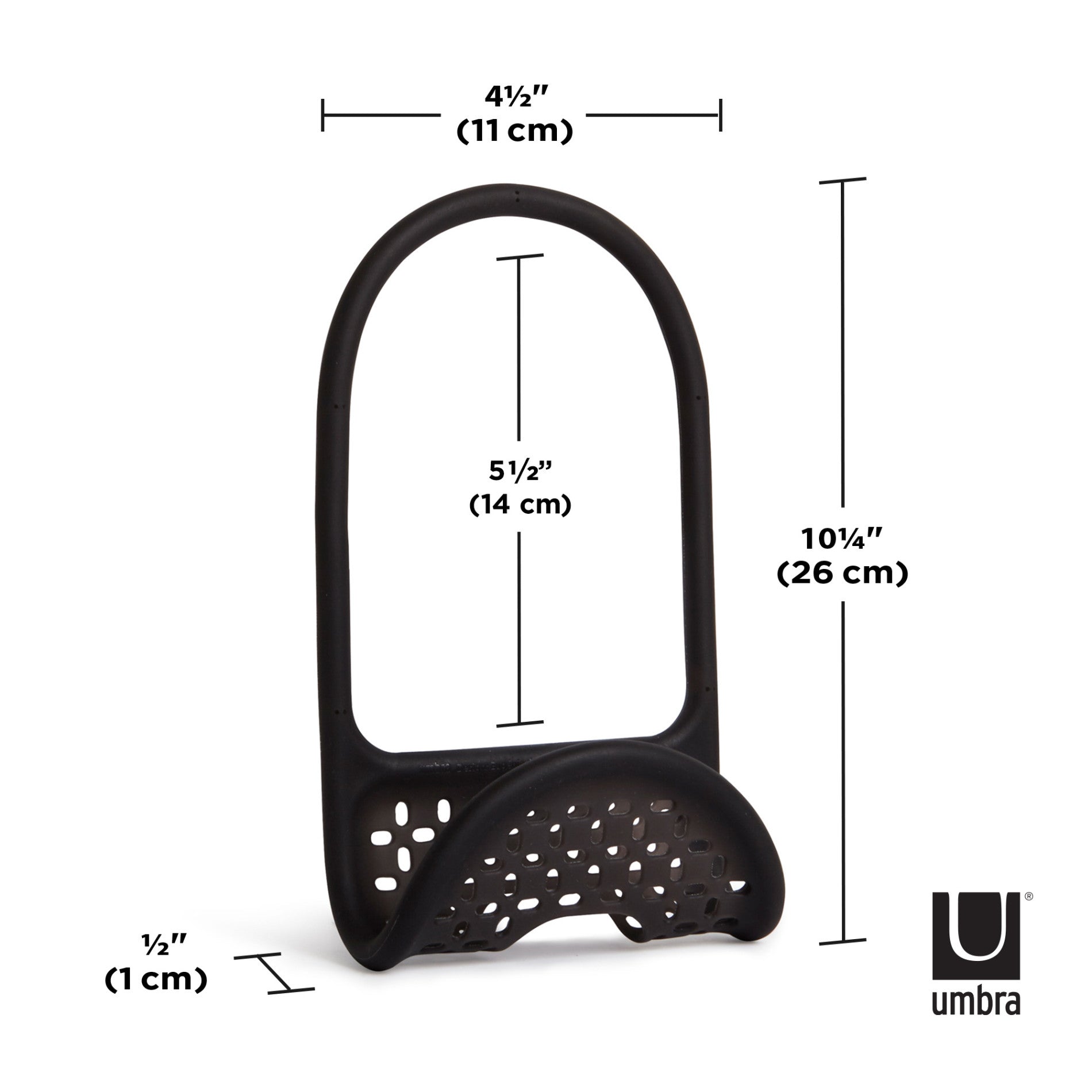 Sling is a flexible sink caddy that can bend to fit any sink wall or faucet. Featuring a wire frame with a flexible molded coating, specifically chosen for its non-slip and elastic properties, which means it will stay put while you do your dishes. Sling has generous cutouts for a scrubbing brush and a perforated base, improving drainage and preventing the build-up of moisture, ensuring your sponge, dishrag, or scrubby will stay clean and dry. Easy to clean, simply rinse it with warm soapy water to keep in clean. Sling measures 10.23 x 4.33 x 0.31" (26 x 11 x 1cm) and comes in a variety of colors.