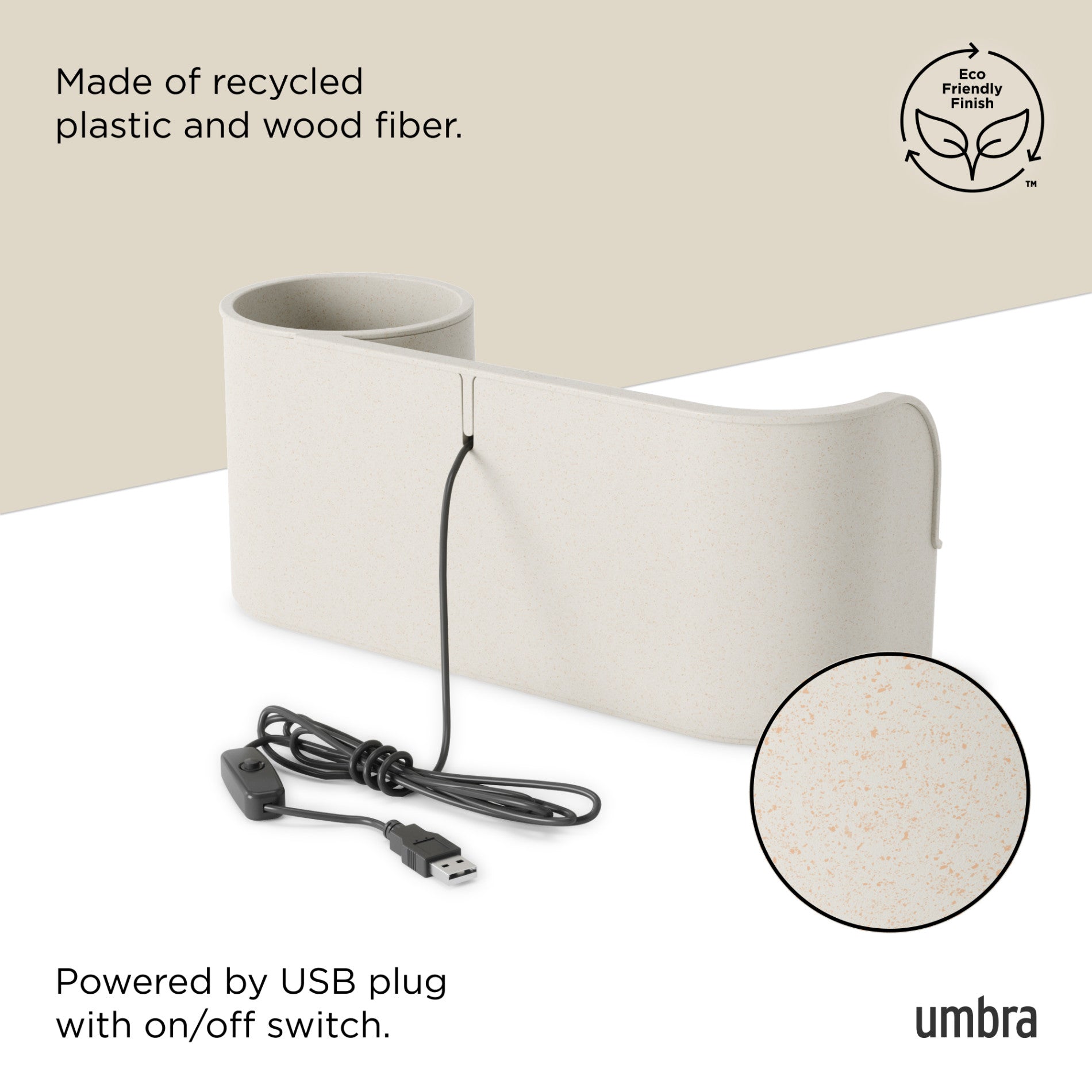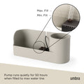 Introducing the Umbra Stream Water Fountain – modern style and convenience meet relaxation! This tabletop fountain offers more than just ambiance to any home or office space; it also helps improve air quality by adding moisture to dry air. The internal MAX/MIN water line indicates how much water is needed to smoothly run the Stream Water Fountain. Keeping water within these lines controls the level of sound creating the gentle, soothing trickle of water. The Stream has plenty of room for 3.5" planters or stationaries, so you can add elements to this piece that will complement your décor perfectly. Since it's powered by a simple USB plug, you won't have to worry about cords and can easily control it with the on/off switch on the cord. Will run for 50 hours between refills at max water line. Measures 12.5 x 4.5 x 5.38" (32 x 11 x 14 cm). ⓘ Do not place on surfaces or tabletops that have potential to be water damaged. The Stream Water Fountain is composed of recycled plastic with a recycled mixed wood fiber, adding a natural texture to the surface. This material is easy to clean, and long lasting. For consistent water flow, we recommend allowing the water to run for a few days. If you are hearing the motor, ensure you are keeping water within the min-max line. If motor starts grinding, STREAM needs to be topped up with more water.