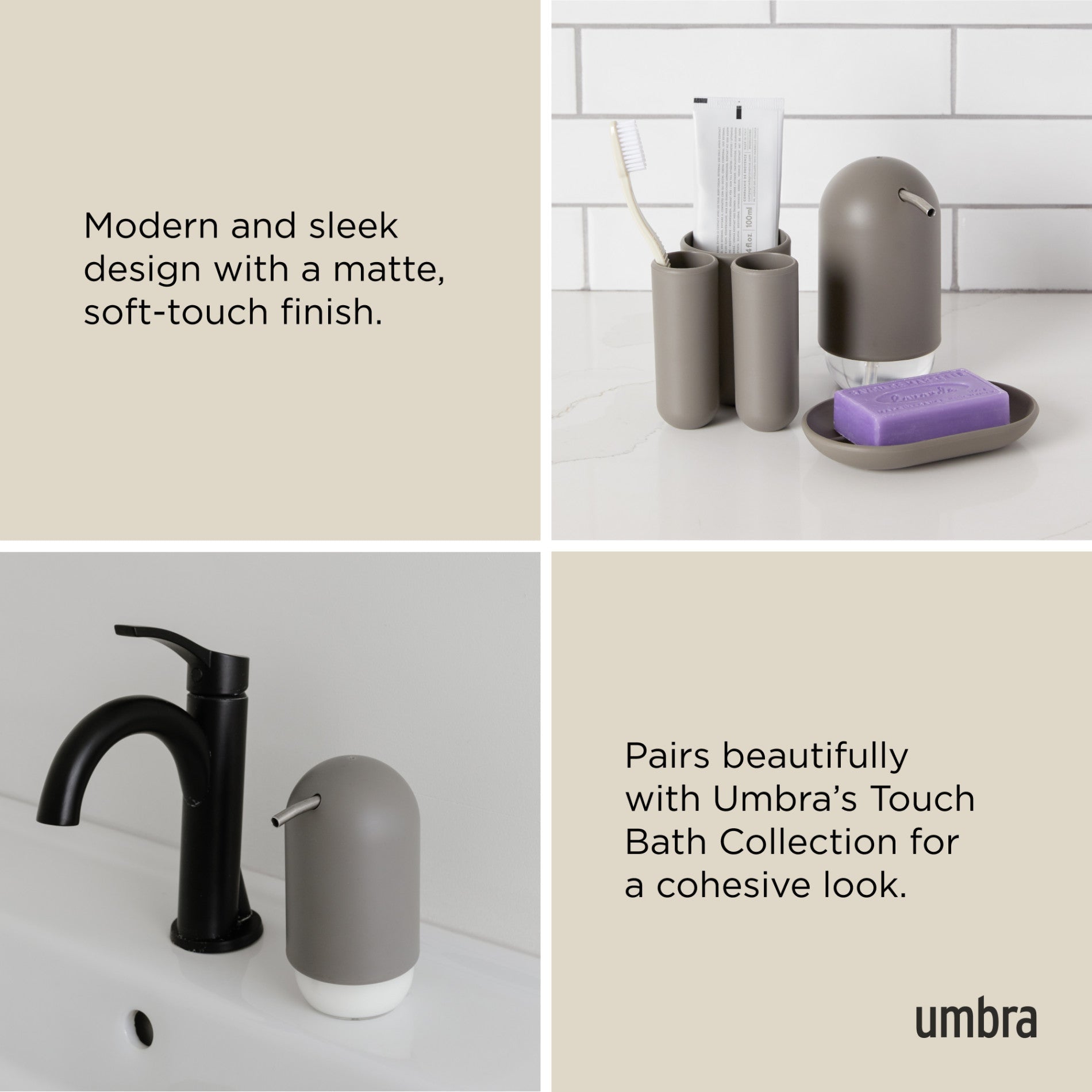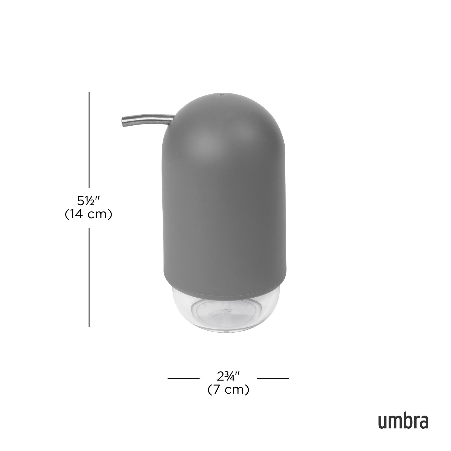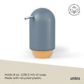 Touch Soap Pump is made of a matte, soft-touch molded material, which is easy to clean, and highly durable. The finish is delicate, smooth to the touch, and pleasing to the eye. Its curved pump is a departure from the typical soap pump, fitting the curve of your hand and dispensing soap with ease. Easy to refill, simply twist off the clear container at the bottom of the dispenser to refill your soap. Its wide opening makes pouring soap inside easy and spill-free. Touch measures 3.85 x 2.95 x 5.31" (10 x 7 x 13 cm) and holds 8 oz. (236.5 mL) of soap. It’s also easy to tell when soap levels are low thanks to the clear soap chamber at the bottom of the dispenser. Match this soap pump with other products from the Touch Bath Collection for a cohesive look. Made with recycled plastics. *For best performance, please avoid using hand sanitizer or any thick gel-based soaps.