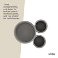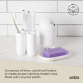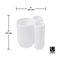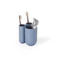 Touch Toothbrush holder has three compartments; a large one for bulkier items like toothpaste, and two smaller compartments for regular-sized toothbrushes. Having separated holders will help keep your toothbrushes organized, and you will be less likely to mix up your toothbrush with someone else's in a shared washroom. Touch is made of a matte, soft-touch moulded material, which is easy to clean, and highly durable. The finish is both luxurious and pleasing to the eye. Compact, it will take up minimal counter space, measuring 4.01 x 3.22 x 3.93" (10 x 8 x 10 cm). Made with recycled plastics.