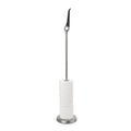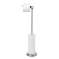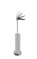 Tucan Toilet Paper Stand is a freestanding toilet paper stand with an integrated reserve for storing toilet paper rolls. Using often under-utilized vertical square footage, while maintaining a small footprint, Tucan holds five toilet paper rolls and dispenses one. This toilet paper stand and reserve has a dispensing head that flips up and down. Flip it up to load and grab your toilet paper rolls and flip is down to dispense toilet paper rolls. Featuring clean lines with a smooth, brushed nickel finish, Tucan comes in nickel and has a small footprint, measuring 6.5 x 8.75 x 28.25" (17 x 22 x 72 cm) with its head down.