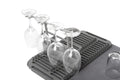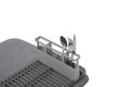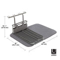 UDry's patented design combines a dish drying rack, stemware holder for drying wineglasses and a utensil caddy with a super-absorbent microfiber dish drying mat (machine washable). Unlike a traditional dish drainer rack that sticks out like a sore thumb and devours precious counter space, UDry features a low-profile, space-saving design that won't get in your way. In fact, you'll barely notice it unless of course it's stacked with freshly washed dishes. But don't let its sleek appearance fool you, UDry holds a surprisingly large assortment of dishes, glassware, cutlery, pots, pans and more. When not in use, your UDry folds up neat and compact so you can tuck it away in a drawer or cupboard leaving your counter top completely clutter-free. Made with recycled plastics.